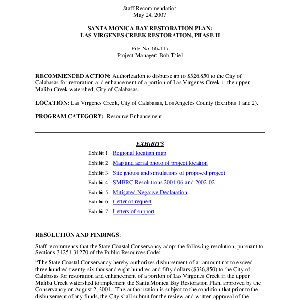 Scope/Content: Project No. 00-117.; "Project Manager: Bob Thiel."; Title from caption.; Subject: Recommended action: Authorization to disburse up to $326,850 to the City of Calabasas for restoration and enhancement of a portion of Las Virgenes Creek in the upper Malibu Creek watershed, City of Calabasas.