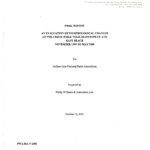 An evaluation of morphological changes at the Crissy Field tidal marsh inlet and East Beach, November 1999 to May 2001: final report