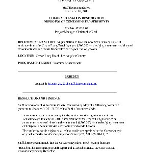 Scope/Content: File No. 07-032-02.; "Project Manager: Christopher Kroll."; Scope and content: Staff recommendation: Augmentation of the Conservancy's January 20, 2011 authorization to the City of Long Beach by up to $300,000 for dredging, treatment, and disposal of contaminated sediments from Colorado Lagoon in Long Beach.