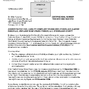 Stanislaus Almond Ranch LLC Lake Road Grizzly Ranch LLC Sewage disposal--Monitoring--California--Stanislaus County Water--Pollution--Law and legislation--California--Stanislaus County