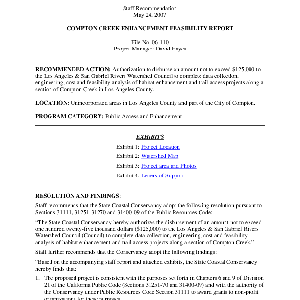 Scope/Content: File No. 06-110.; "Project Manager: David Hayes."; Title from caption.; Subject: Recommended action: Authorization to disburse an amount not to exceed $125,000 to the Los Angeles & San Gabriel Rivers Watershed Council to complete data collection, engineering, cost and feasibility analysis of habitat enhancement and trail access projects along a section of Compton Creek in Los Angeles County.
