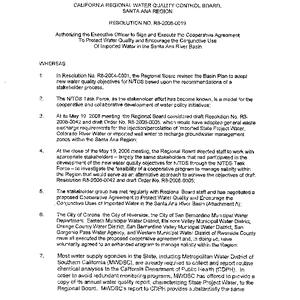 Resolution no. R8-2008-0019 authorizing the executive officer to sign and execute the cooperative agreement to protect water quality and encourage the conjunctive use of imported water in the Santa Ana River Basin