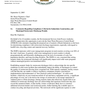 Comments regarding compliance criteria for industrial, construction, and municipal stormwater discharge permits