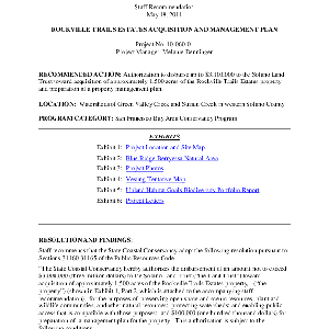 Scope/Content: Project No. 10-060-01.; "Project Manager: Melanie Denninger."; Scope and content: Staff recommendation: Authorization to disburse up to $3,100,000 to the Solano Land Trust toward acquisition of approximately 1,500 acres of the Rockville Trails Estates property and preparation of a property management plan.
