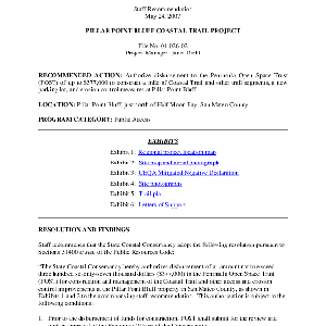 Scope/Content: File No. 04-026-02.; "Project Manager: Janet Diehl."; Title from PDF caption.; Scope and content: Staff recommendation: Authorize disbursement to the Peninsula Open Space Trust of up to $377,000 to construct a mile of Coastal Trail and other trail segments, a new parking lot, and erosion control measures at Pillar Point Bluff.