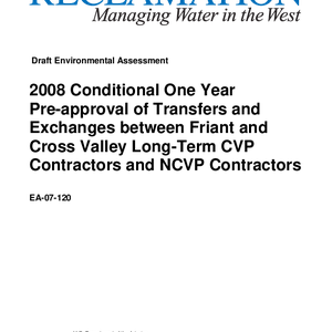 Draft environmental assessment : 2008 conditional one year pre-approval of transfers and exchanges between Friant and Cross Valley ong-term CVP contractors and non-CVP contractors
