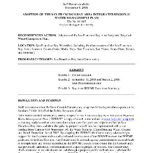 Scope/Content: File No. 04-067.; "Project Manager: Jeff Melby."; Title from PDF caption.; Subject: Recommended action: Adoption of the San Francisco Bay Area Integrated Regional Water Management Plan.