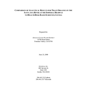 Text / Comparison of analytical results for trace organics in the Santa Ana River …