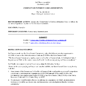Text / Staff recommendation, October 29, 2009: Conflict-of-Interest Code amendments