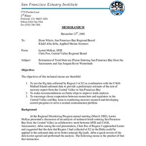 Text / Estimation of total mercury fluxes entering San Francisco Bay from the Sacramento …