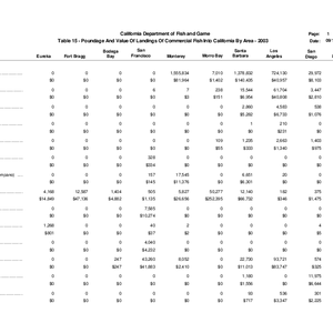Text / Poundage and value of landings of commercial fish into California by area, …