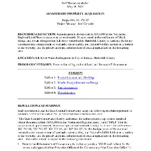 Scope/Content: Project No. 01-156-02.; "Project Manager: Joel Gerwein."; Scope and content: Staff recommendation: Authorization to disburse up to $315,000 to the Northcoast Regional Land Trust to acquire an approximately 36 acre parcel at the confluence of Martin Slough and Swain Slough in the Elk River watershed in Humboldt County to facilitate the future restoration and enhancement of wetlands, water quality, and fish and wildlife habitat on a portion of the property, and the preservation and enhancement of coastal agriculture on the remaining area.