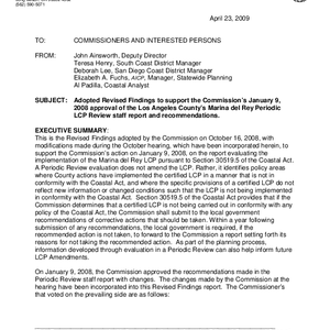 Adopted revised findings to support the Commission's January 9, 2008 approval of the Los Angeles County's Marina del Rey periodic LCP review staff report and recommendations