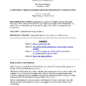 Text / Staff recommendation, December 3, 2009: Carpenteria Creek watershed Restoration Project augmentation