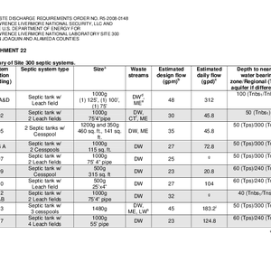 Waste discharge requirements order no. R5-2008-0148, Lawrence Livermore National Security LLC and the U.S. Department of Energy for Lawrence Livermore National Laboratory Experimental Test Site (site 300): summary of Site 300 septic systems