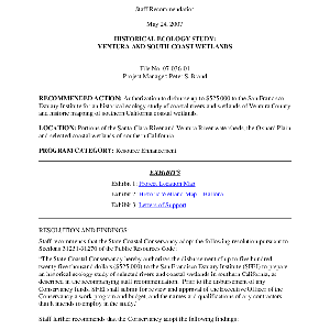 Scope/Content: Project No. 07-036-01.; "Project Manager: Peter S. Brand."; Title from caption.; Subject: Recommended action: Authorization to disburse up to $525,000 to the San Francisco Estuary Institute for an historical ecology study of coastal rivers and wetlands of Ventura County and historic mapping of southern California coastal wetlands.