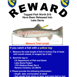 Text / Reward: tagged fish worth $10 have been released into Lake Davis