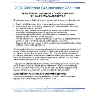 Text / 2007 California Groundwater Coalition: the increasing importance of groundwater for California water …
