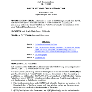 California State Coastal Conservancy U.S. Fish and Wildlife Service Golden Gate National Parks Conservancy Stream restoration--California--Marin County--Finance