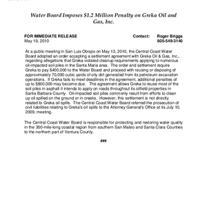 Text / Water Board imposes $1.2 million penalty on Greka Oil and Gas, Inc