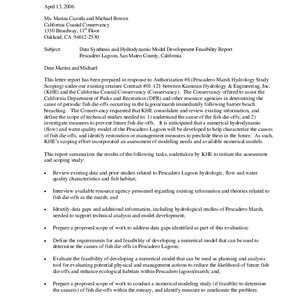 Text / Data synthesis and hydrodynamic model development feasibility report, Pescadero Lagoon, San Mateo …