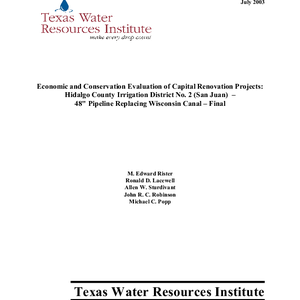 Economic and conservation evaluation of capital renovation projects Hidalgo County Irrigation District No. 2 (San Juan) - 48" pipeline replacing Wisconsin Canal - final