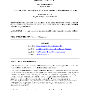 Scope/Content: Project No. 08-034-01.; "Project Manager: Michael Bowen."; Title from PDF caption.; Scope and content: Staff recommendation: Authorization to disburse up to $1,000,000 to Trout Unlimited to prepare a feasibility study of water conservation recommendations for key coastal watersheds located throughout California.