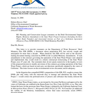 Planning and Conservation League comments on the draft environmental impact report, Monterey amendment to the State Water Project contracts (including the Kern Water Bank transfer) and associated actions as part of a settlement agreement (Monterey Plus), SCH# 2003011118 ("Draft Monterey Plus EIR")