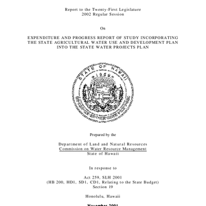 Expenditure and progress report of study incorporating the state agricultural water use and development plan into the state water projects plan: in response to Act 259, SLH 2001 (HB 200, HD1, SD1, CD1, Relating to the State Budget) Section 19