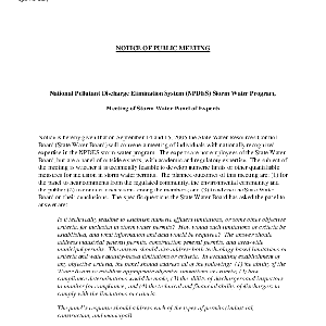 Text / National pollutant discharge elimination system (NPDES) storm water program, meeting of storm …
