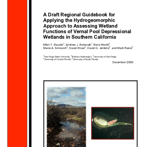 A draft regional guidebook for applying the hydrogeomorphic approach to assessing wetland functions of vernal pool depressional wetlands in southern California