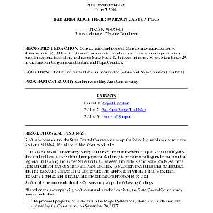 Scope/Content: Project No. 08-054-01.; "Project Manager: Melanie Denninger."; Title from caption.; Subject: Recommended action: Consideration and possible Conservancy authorization to disburse up to $55,000 to the Solano Transportation Authority to prepare a multi-jurisdiction plan for regional trails along and across State Route 12 between Interstate 80 and State Route 29, in the Jameson Canyon area of Solano and Napa Counties.