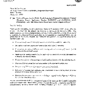Scope/Content: Letter to Thom McCue, Planner, Monterey County Planning and Building Inspection Department.; "April 3, 2002."