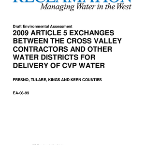 2009 Article 5 exchanges between the cross valley contractors and other water districts for delivery of CVP water: Fresno, Tulare, Kings and Kern counties