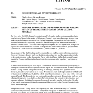 Response to comments and addendum to the periodic review of the Monterey County Local Coastal Program