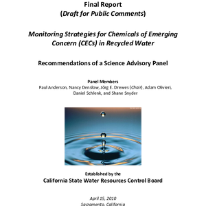 Monitoring strategies for chemicals of emerging concern (CECs) in recycled water recommendations of a science advisory panel, draft for public comments