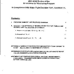 2001-2002 review of the environmental monitoring program (EMP) in compliance with water right decision 1641, condition 11