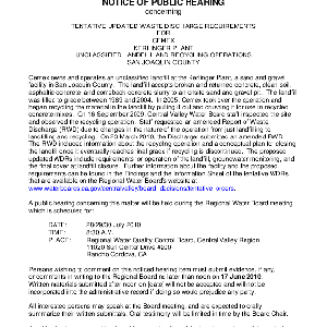 Notice of public hearing concerning tentative updated waste discharge requirements for CEMEX, Kerlinger Plant, unclassified landfill and recycling operations, San Joaquin County