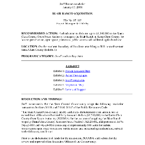 Scope/Content: Project No. 07-103.; "Project Manager: Jeff Melby."; Title from PDF caption.; Scope and content: Staff recommendation: Authorization to disburse up to $4,340,000 to the Santa Clara County Open Space Authority to acquire the Blair Ranch in Santa Clara County for habitat preservation, open space protection, public access and incidental agricultural use.