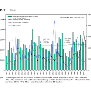 Text / Graphs comparing Chinook and estimated yearly natural production