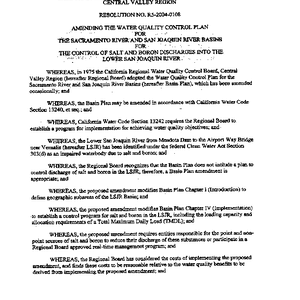 State Water Resources Control Board Resolution 2005-0087: approving an amendment to the Water Quality Control Plan for the Central Valley Region to incorporate a total maximum daily load (TMDL) for the control of salt and boron discharges into the Lower San Joaquin River: attachment 1