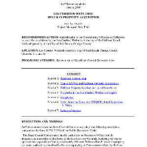 Scope/Content: Project No. 98-015.; "Project Manager: Bob Thiel."; Title from PDF caption.; Scope and content: Staff recommendation: Authorization to the Conservancy's Executive Officer to support the acquisition by the Los Cerritos Wetlands Authority of the Hellman Ranch lowlands property in the City of Seal Beach, Orange County.