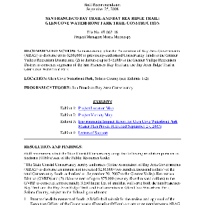 Scope/Content: Project No. 07-063-18.; "Project Manager: Moira McEnespy."; Title from caption.; Subject: Recommended action: Authorization (1) for the Association of Bay Area Governments to disburse up to $200,000 of previously-authorized Conservancy funds to the Greater Vallejo Recreation District and (2) to disburse up to $75,000 to the Greater Vallejo Recreation District to construct segments of the San Francisco Bay Trail and the Bay Area Ridge Trail in Glen Cove Waterfront Park.
