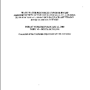 State Water Resources Control Board periodic review of the 1995 Water Quality Control Plan for the San Francisco Bay/Sacramento-San Joaquin Delta Estuary public workshop, January 12, 2005, topic #5: Delta outflow