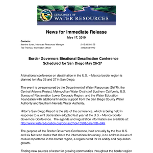 Text / Border governors binational desalination conference scheduled for San Diego May 26-27