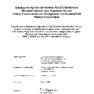 Scope/Content: May 5, 2008.; "Action agencies: U.S. Army Corps of Engineers, Bonneville Power Administration, U.S. Bureau of Reclamation, National Marine Fisheries Service."; "NOAA Fisheries Log Number: F/NWR/2005/05883."; Includes bibliographical references.