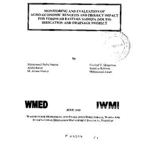 Monitoring and evaluation of agro-economic benefits and project impact for Fordwah Eastern Sadiqia (South) Irrigation and Drainage Project