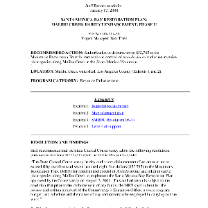 Scope/Content: Project No. 00-117-38.; "Project Manager: Bob Thiel."; Title from PDF caption.; Scope and content: Staff recommendation: Authorization to disburse up to $52,785 to the Mountains Restoration Trust for removal and control of Arundo donax and other invasive plant species along Malibu Creek in the Santa Monica Mountains.