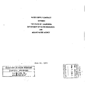 Water supply contract between the State of California Department of Water Resources and Mojave Water Agency