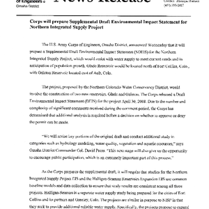 Text / Corps will prepare supplemental draft environmental impact statement for Northern Integrated Supply …